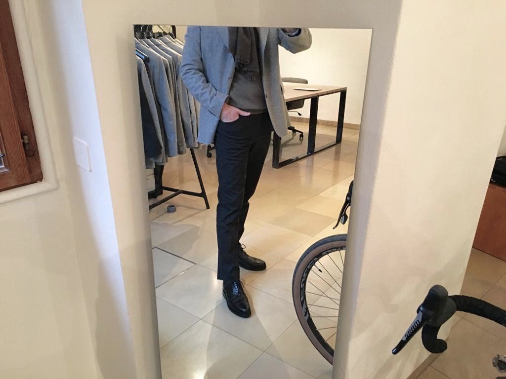 Functional pants made from high performance material (waterrepellent) for urban cycling, as well as formal use.